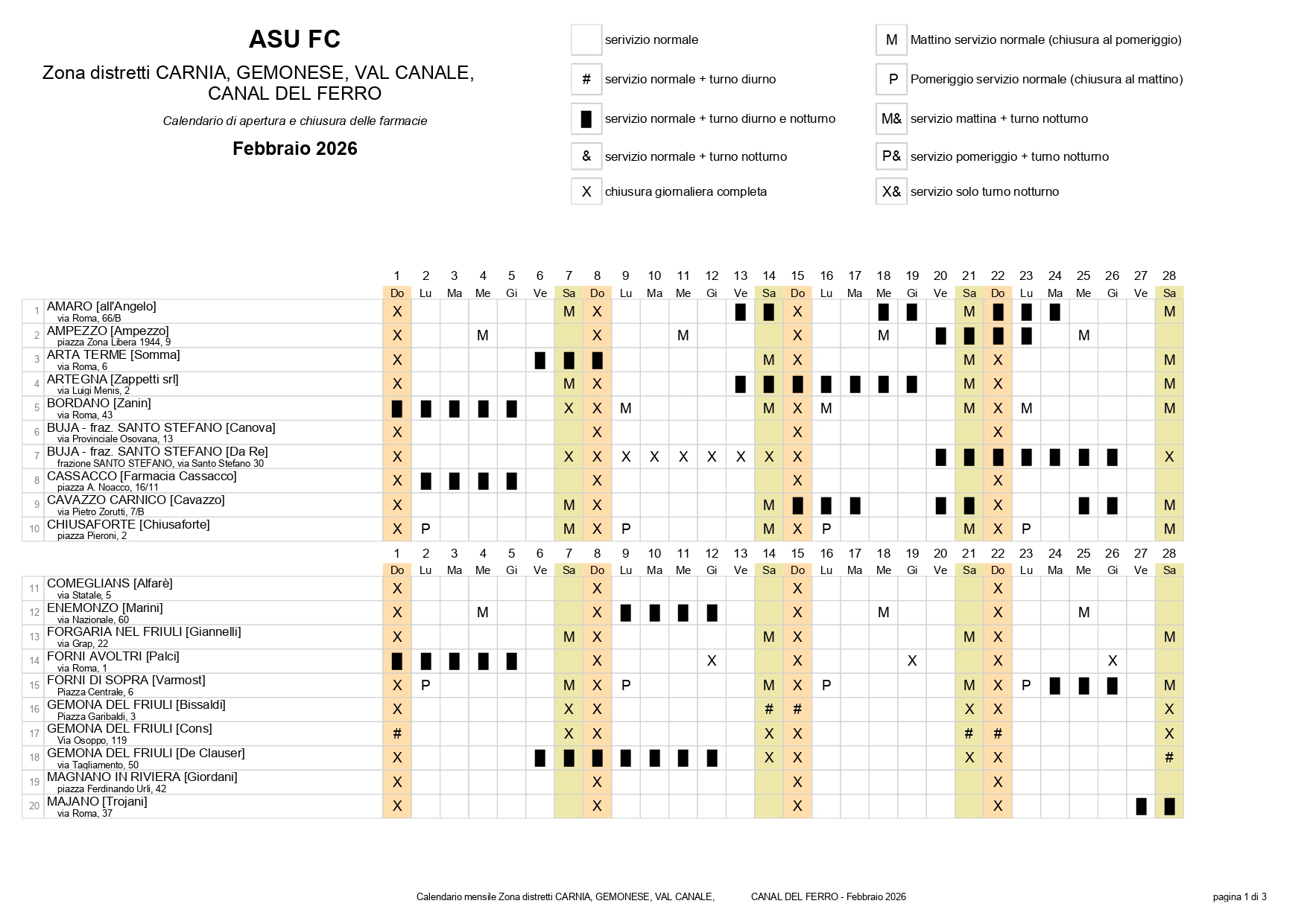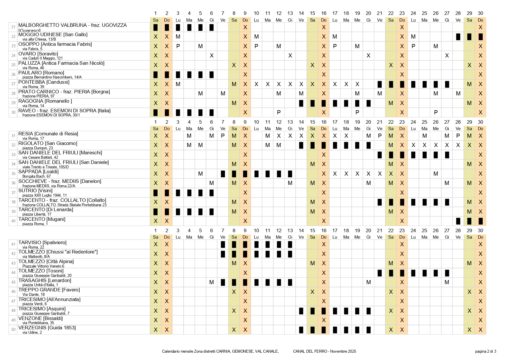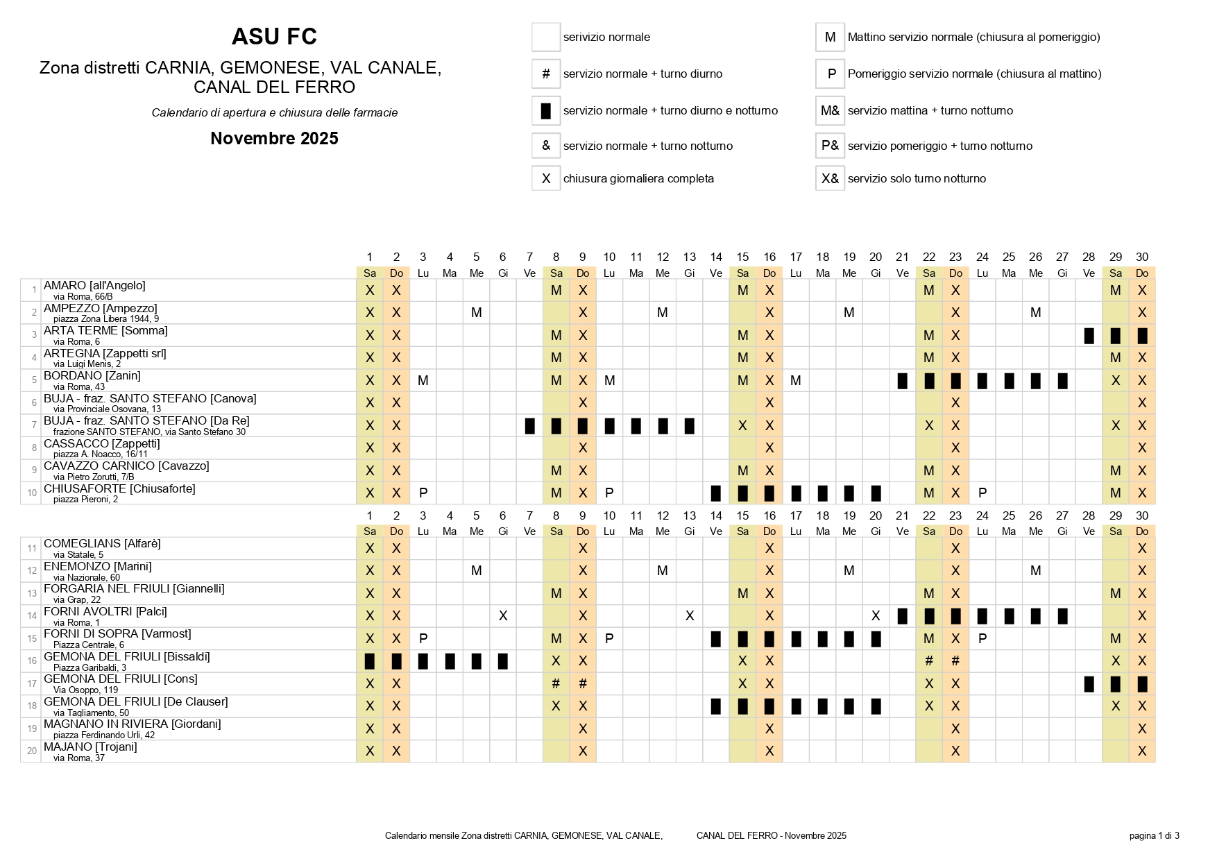 si apriranno le tabelle delle Farmacie di Turno della Provincia di Udine zona ASL3 Alto Friuli