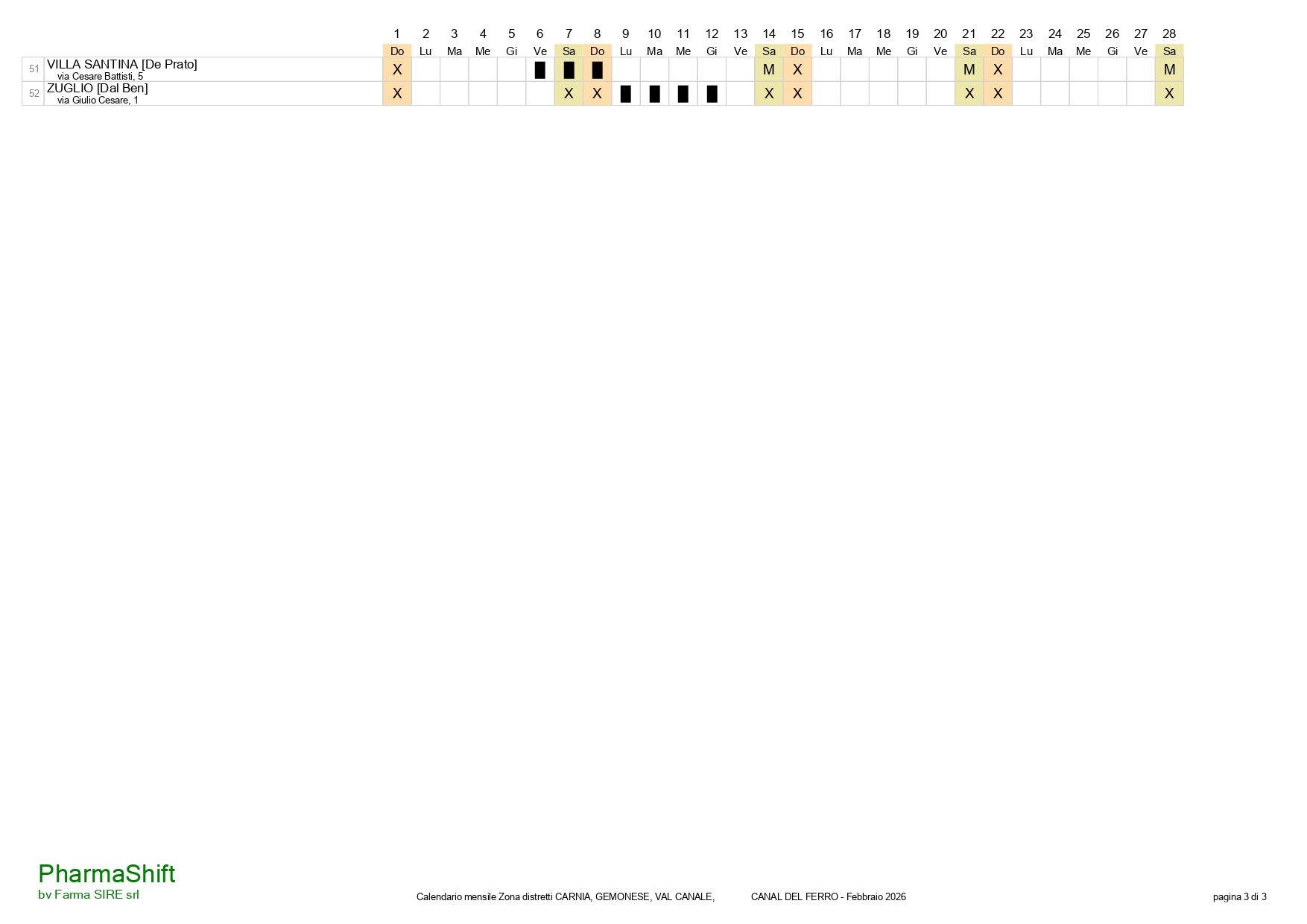 FARMACIE DI TURNO DIURNO e NOTTURNO dalle 8:30 di Venerdì 30 Gennaio 2026 alle 8:29 di Venerdì 6 Febbraio 2026 :